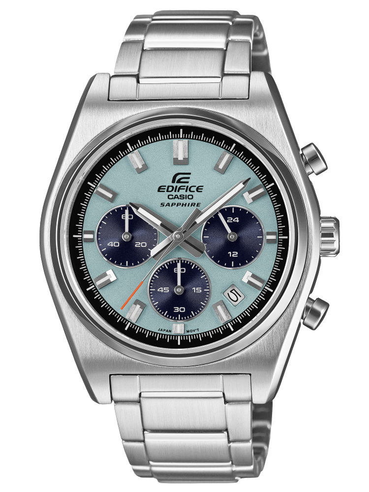 La Casio Edifice EFB-730D-2BVUEF incarne l’élégance et la performance dans un design sportif et raffiné. Conçue en acier inoxydable, cette montre chronographe séduit par son cadran bleu clair sublimé par des détails argentés, offrant un équilibre parfait entre sophistication et fonctionnalité.