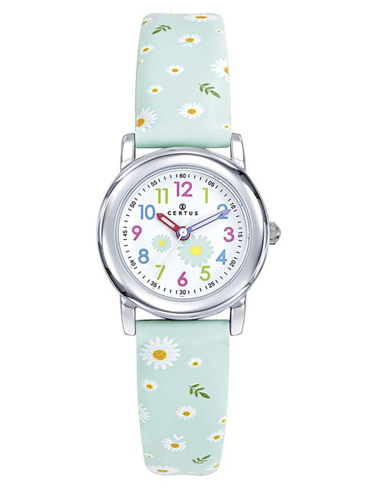 Montre Enfant Certus Junior 647708 – Cadran Blanc, Bracelet Vert Clair à Fleurs