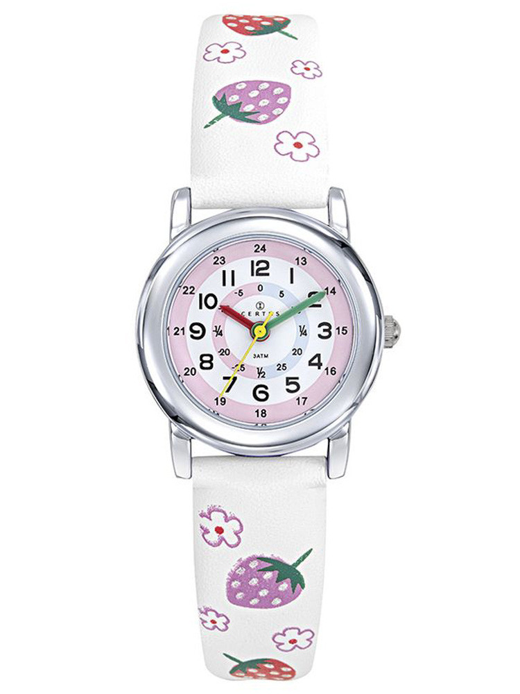 Montre Enfant Certus Junior 647714 – Bracelet Blanc à Fraises – Cadran Blanc Pédagogique