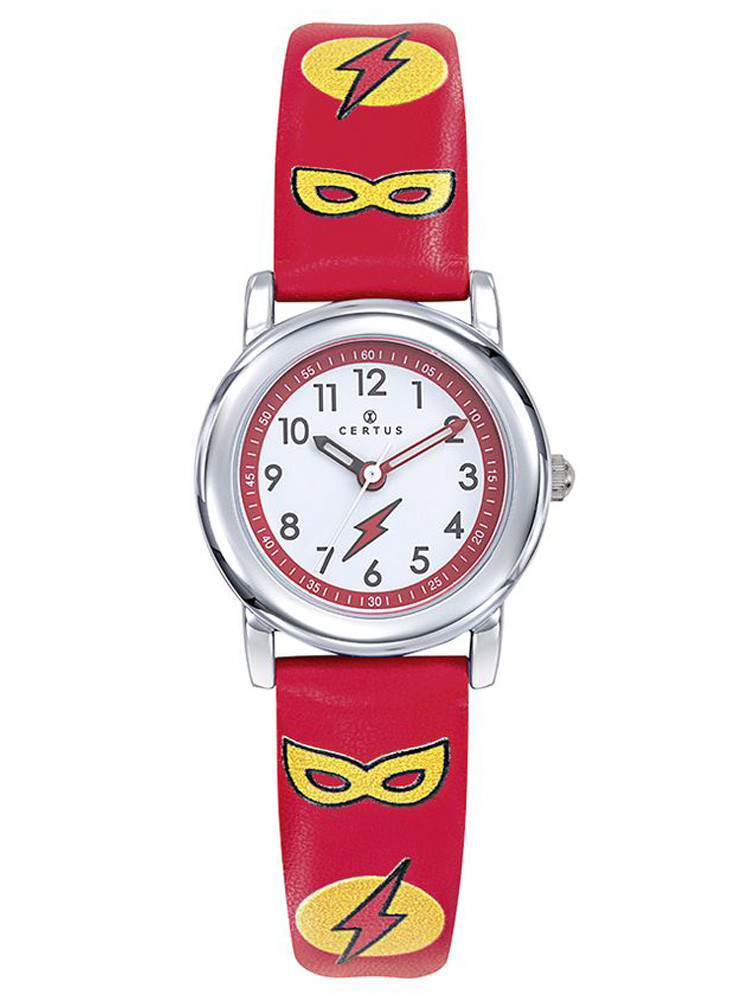 Montre Enfant Certus Junior 647721 – Bracelet Rouge Super Héros – Cadran Blanc Chiffres Noirs