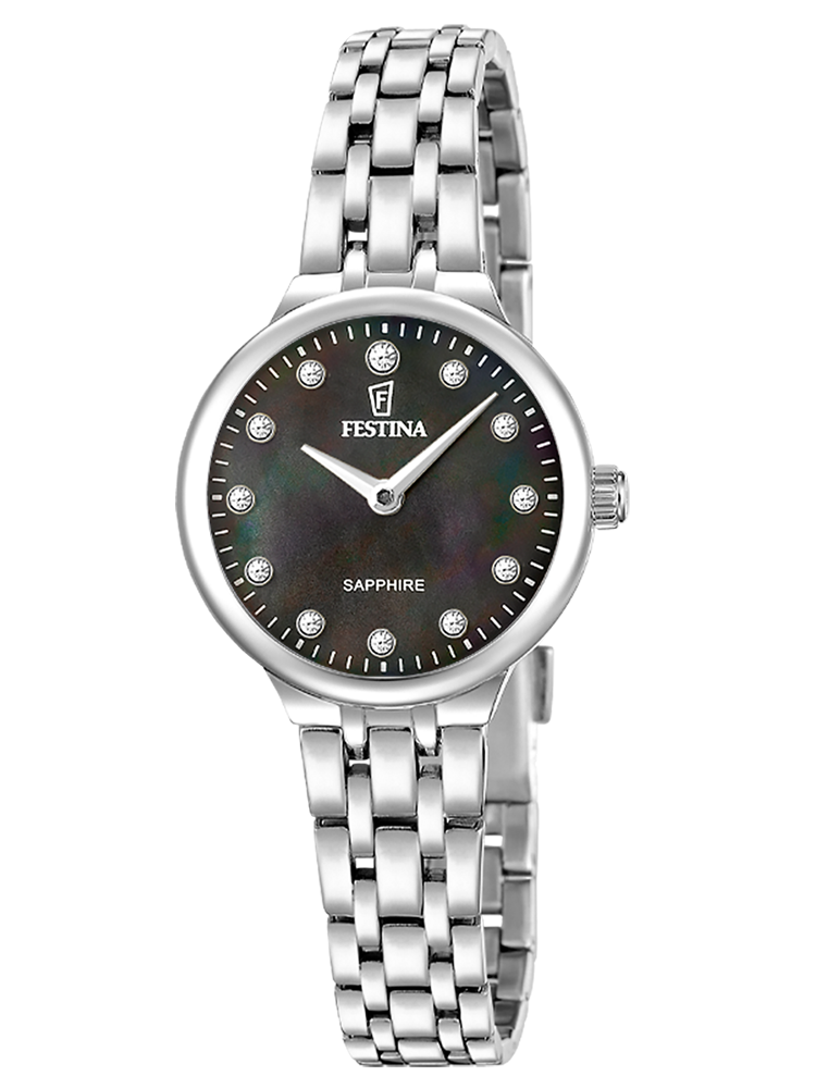 Montre Femme Festina – Acier Gris, Cadran Noir Strass F20744/6