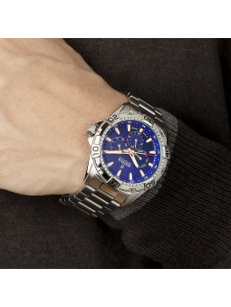 Dotée d’un mouvement quartz précis, cette montre propose un affichage multifonction à 6 aiguilles, avec jour et date pour une lecture complète du temps. Le bracelet en acier inoxydable gris avec fermoir déployant assure un maintien sécurisé et confortable.