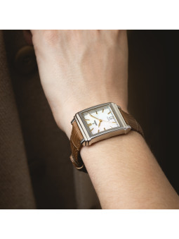 Son bracelet en cuir marron apporte une touche de chaleur et de confort, parfait pour un usage quotidien ou une tenue habillée. Fine et légère avec seulement 7.9 mm d’épaisseur pour 34.3 g, cette montre allie finesse et modernité.