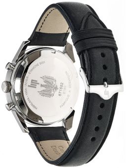 Montre LIP Himalaya 40 Chrono OS21 (671592) – Chronographe quartz, boîtier acier 40 mm, cadran noir mat, date à 6h, aiguilles argentées lumineuses, verre saphir bombé antireflet, bracelet cuir noir, étanche 5 ATM.