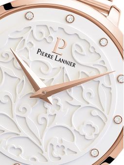 Montre femme Pierre Lannier bracelet milanais rose cadran motif fleuri 039L908