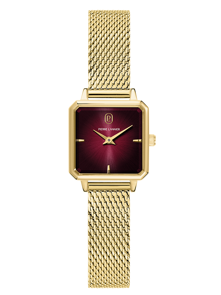 Montre femme Pierre Lannier carrée dorée cadran bordeaux 072J552
