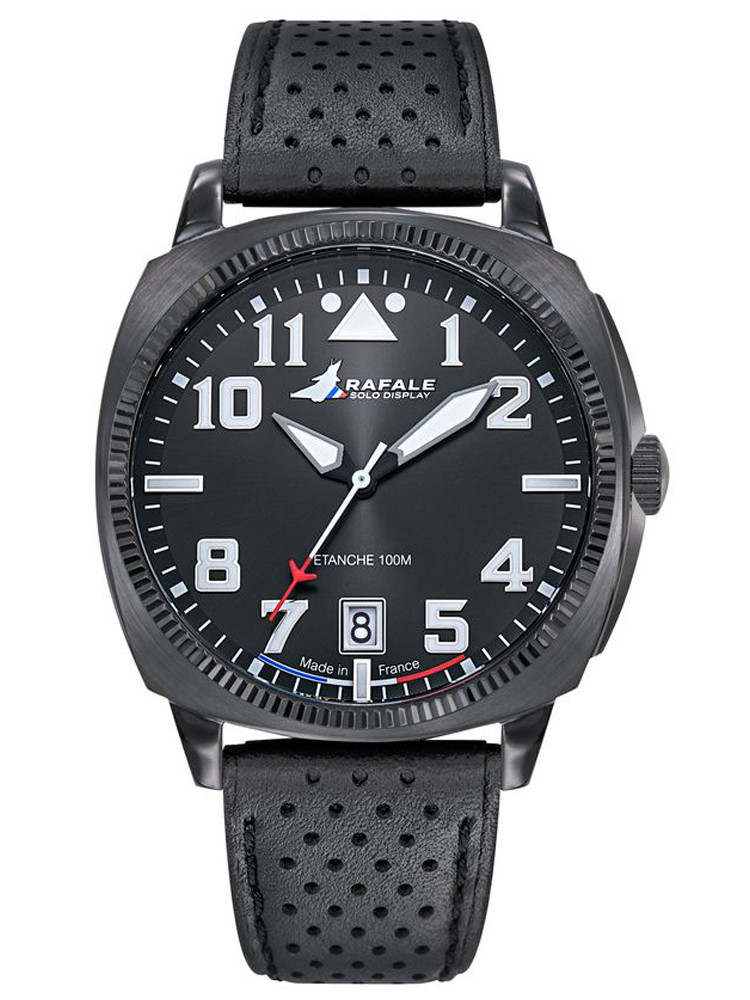 Le bracelet en cuir noir, confortable et élégant, est maintenu par une boucle classique, garantissant un port sûr et agréable. La RAFALE 666033 est une montre masculine, moderne et raffinée, adaptée à un style urbain et sportif.